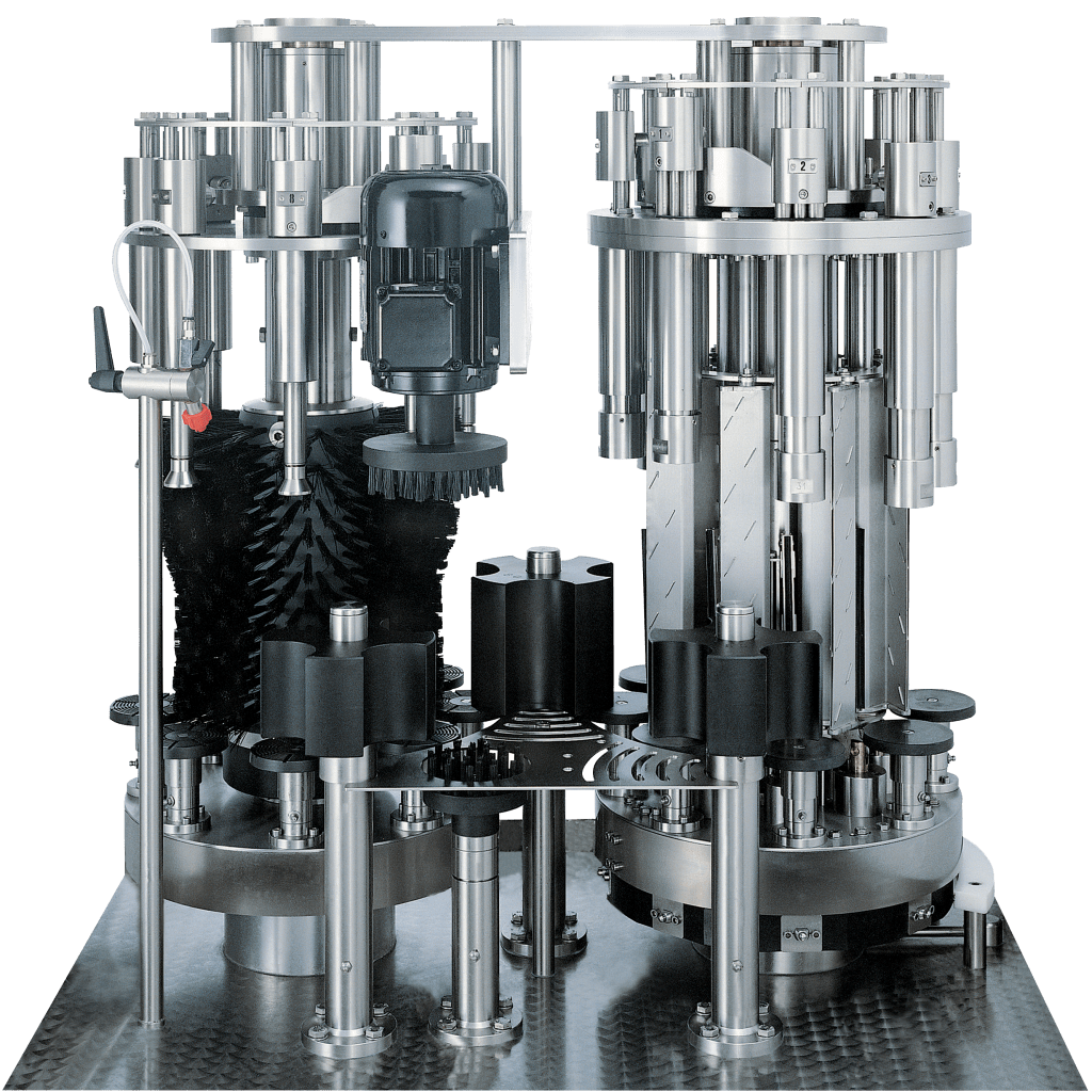 Monoblocs semiautomáticos para el tapado y bozalado de botellas de espumoso de 0.37 cl, 0.75 cl y 150 cl.